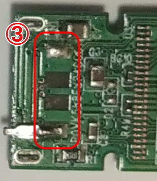 ③は導電端子が取れた箇所を拡大したものです