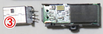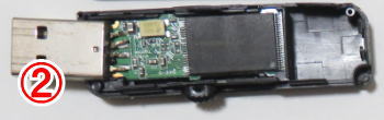 小箱に入れられて届いたUSBメモリは①の写真のように解体されていました。