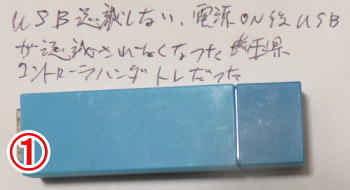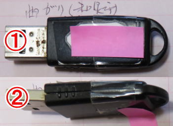 外傷は何もないUSBメモリがパソコンから認識されなくなったとのことで、曲がったような症状はないとのことでした。