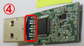 ④はコネクタの付け根である導電端子を拡大しています。これでも異常が見えません。