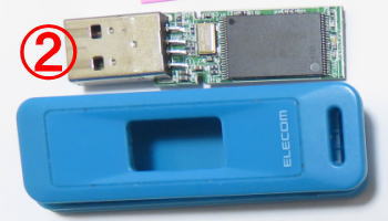 原因はUSBメモリをパソコンに付けた状態で横方向に力が加わった時、導電端子がずれて回路パターンが断線したようです。
