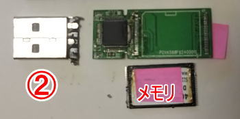 ②の写真はメモリを取り外した状態です。両サイドに24本ずつ、合計48本の端子が付いています。