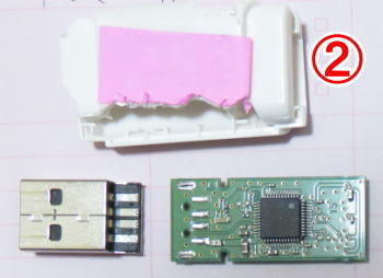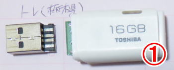 届いたUSBメモリは①の写真のように取れていました