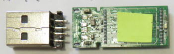 届いた封筒からUSBメモリを取り出すと僅かにコネクタが曲がっていました。ケースから内部を取り出してみると曲がってはいるが導電端子の半田付けの異常はみられません。