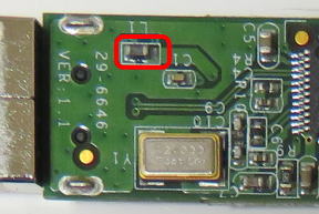 この部品は主に回路中の電圧を一定に保つ目的で使われます。安価なUSBメモリでは装着されていません
